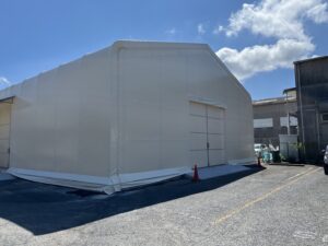 台風上陸前に間に合いました‼福岡県でテント倉庫を建築しました‼②
