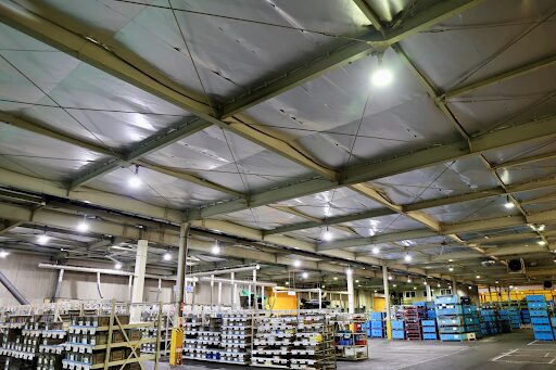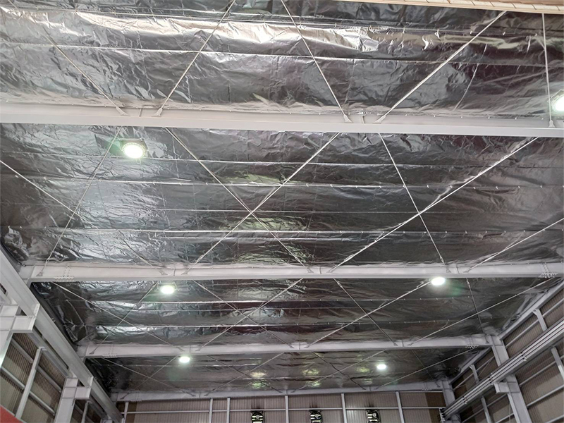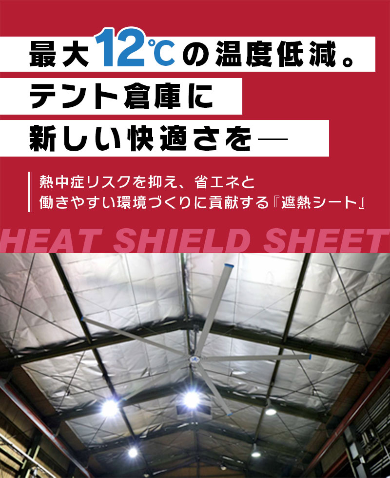テント倉庫の天井や壁面に 遮熱シート を施工することで、庫内の温度上昇を大幅に抑えることができます。