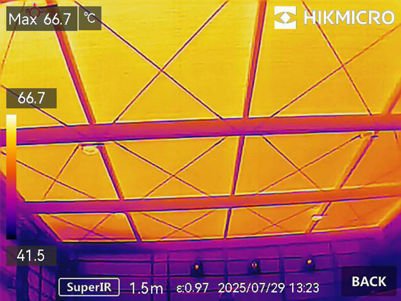 数値からもお分かりいただける通り、遮熱シートを施工することでテント倉庫内の温度低下が確認されています。