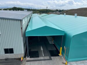 大型トラックの荷捌き場テントとして(ウィングを開いての作業)