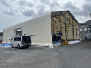 テント倉庫の形は自由自在‼秋田県で片流れのテント倉庫の施工が完了しました‼
