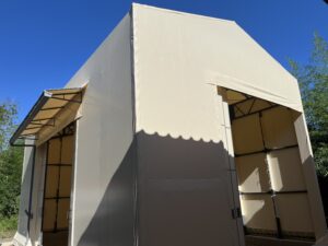 2023.12.25 テント倉庫 岐阜県でテント倉庫を建築しました。 建設の場所 岐阜市 種別 サイズ W7.5×L5.5 使用したテント生地 オプション 担当者のひとこと 床面積 40㎡程のテント倉庫です。 基礎工事後、取付工事は1日で作業が完了しました。 一般建築に比べて、テント倉庫はシンプルな構造・軽量な素材構成であるため、短期間での設置が可能となります。