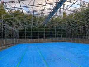 2022.10.14 生地貼り替え テント倉庫生地替え|愛知県 建設の場所 愛知県 種別 サイズ W15×L22×H3.5 使用したテント生地 ウルトラマックス:アイボリー オプション ベンチレーター 担当者のひとこと 愛知県にてテント倉庫の生地替えを行いました!生地をグリーンからアイボリーへ色も変更し、透光率も上がり昼間であれば照明も必要ないくらい明るいです。工事自体も1日半で終了しました。生地替えをご検討の方はお気軽にお問い合わせください。