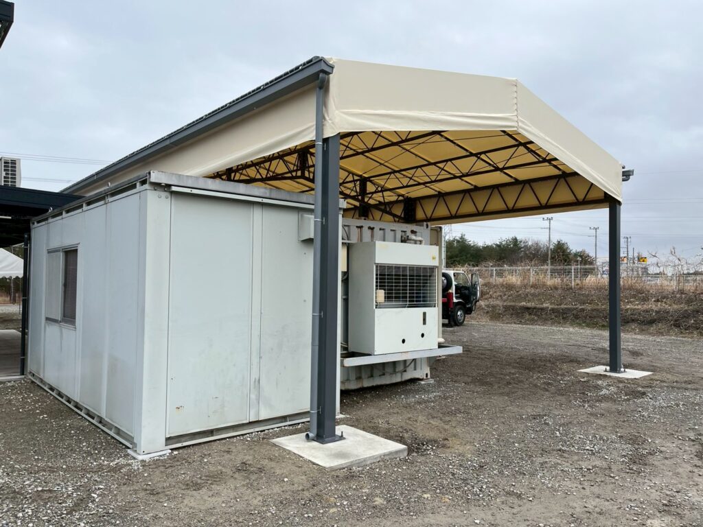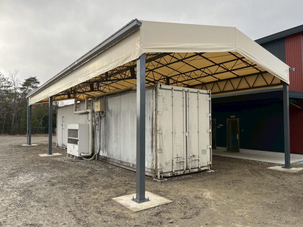 冷蔵庫を日陰にし冷却効率UP!滋賀県で上屋テントを建築しました!