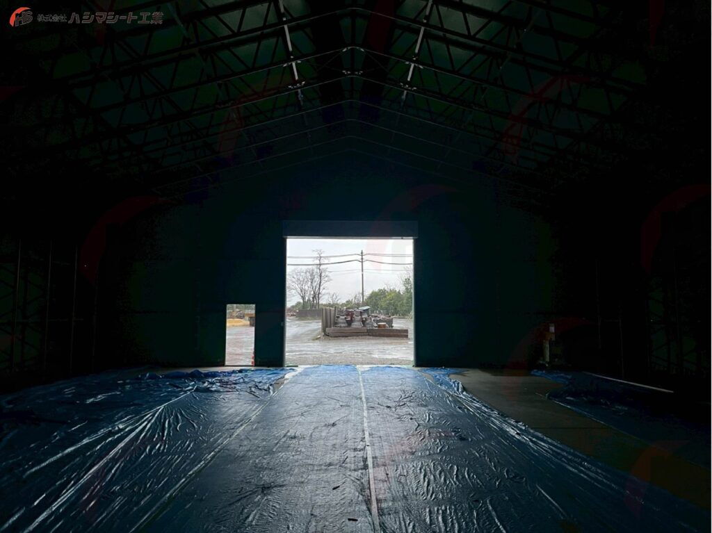 | 担当者のひとこと | 今回は積雪の多い富山県でテント倉庫を建築しました!積雪に耐えられるようにしっかりと構造計算し、適した鉄骨、生地を使用して建築しました。生地はグリーン色を使用しております。写真の4枚目を見て頂くとテント倉庫内がとても暗いことがわかります。生地の色によって遮光率が違うため、用途によって使い分けが可能です。お客様の用途に合わせて弊社が最適なテント倉庫を提供できるよう全力で対応させていただきます。まずは見積りから!お気軽にお問い合わせください! |