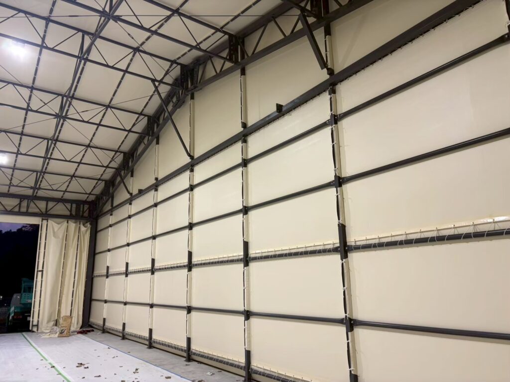 既設の倉庫を更に快適に!福岡県で芯材カーテンを取り付けました!