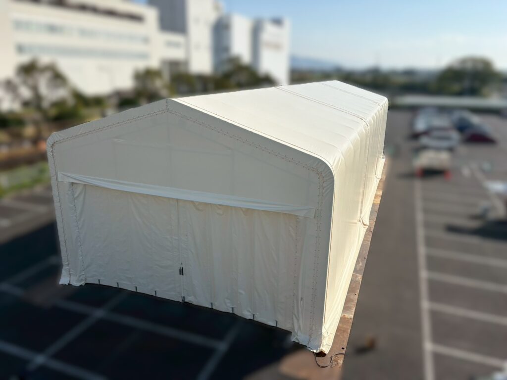 駐車場に短期間で設置!熊本県にレンタルテント倉庫を設置しました!